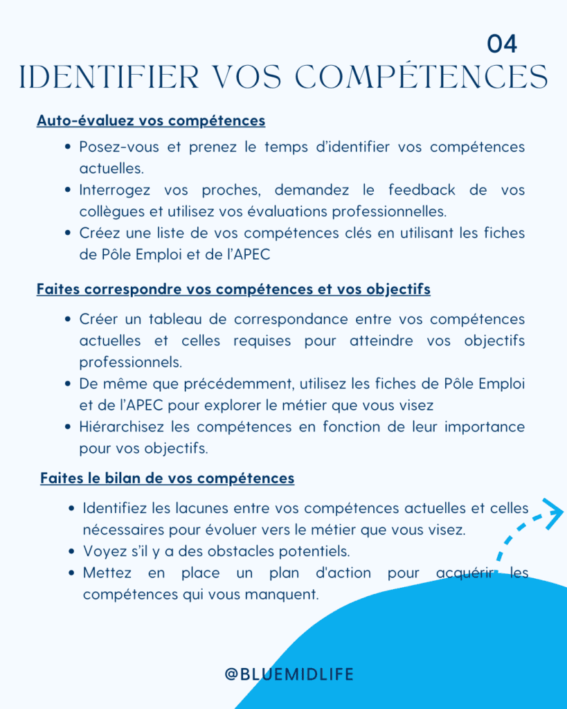 - Identifiez vos compétences clés : Faites une auto-évaluation honnête de vos compétences actuelles.